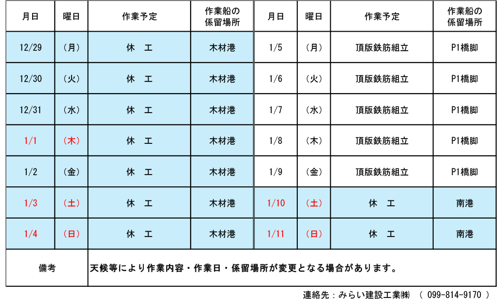 令和7年12月29日(月)〜令和8年1月11日(日)