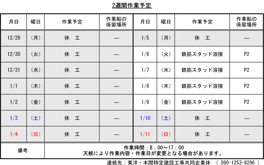 令和7年12月29日(月)〜令和8年1月11日(日)
