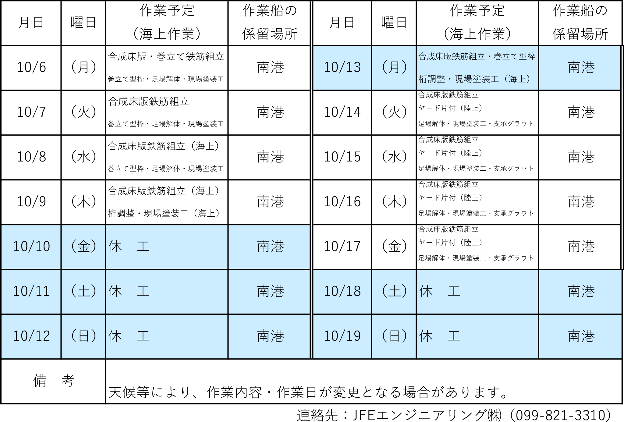 令和7年10月6日(月)〜10月19日(日)