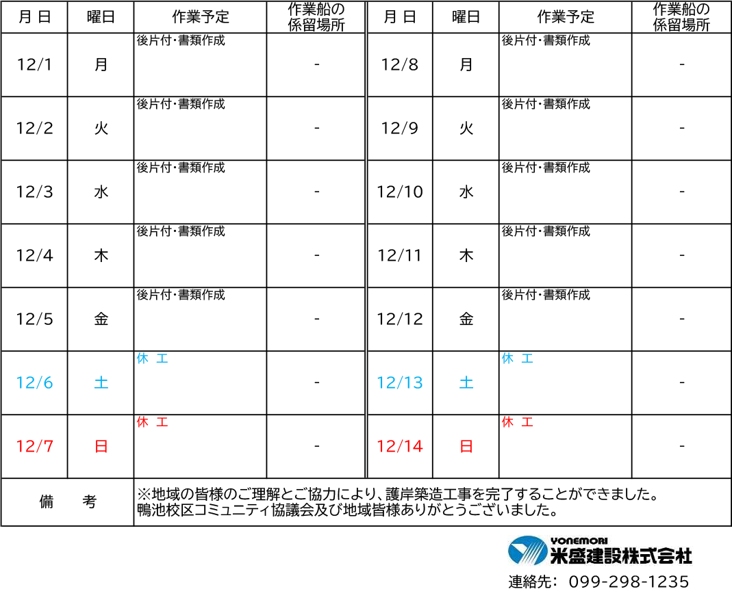 令和7年12月1日(月)〜12月14日(日)