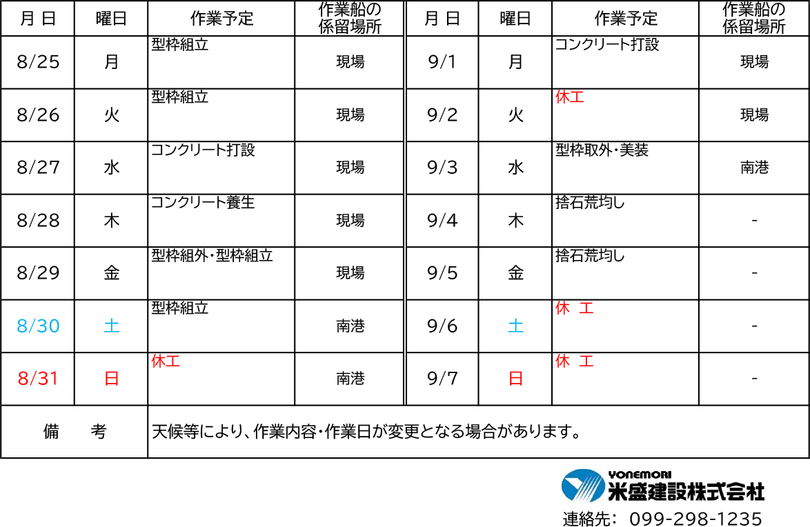 令和7年8月11日(月)〜8月24日(日)