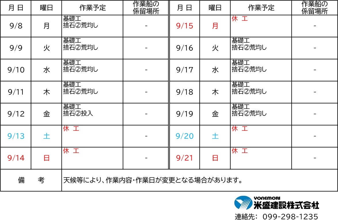 令和7年9月8日(月)〜9月21日(日)