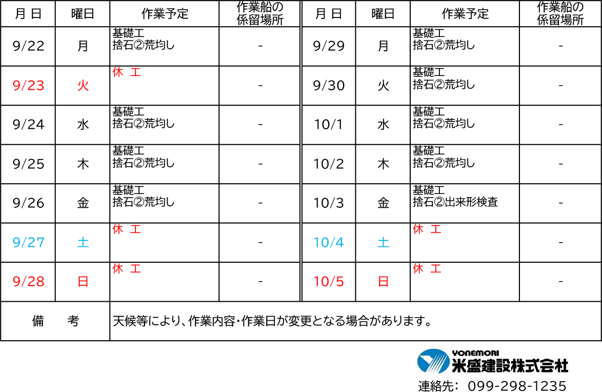 令和7年9月22日(月)〜10月5日(日)