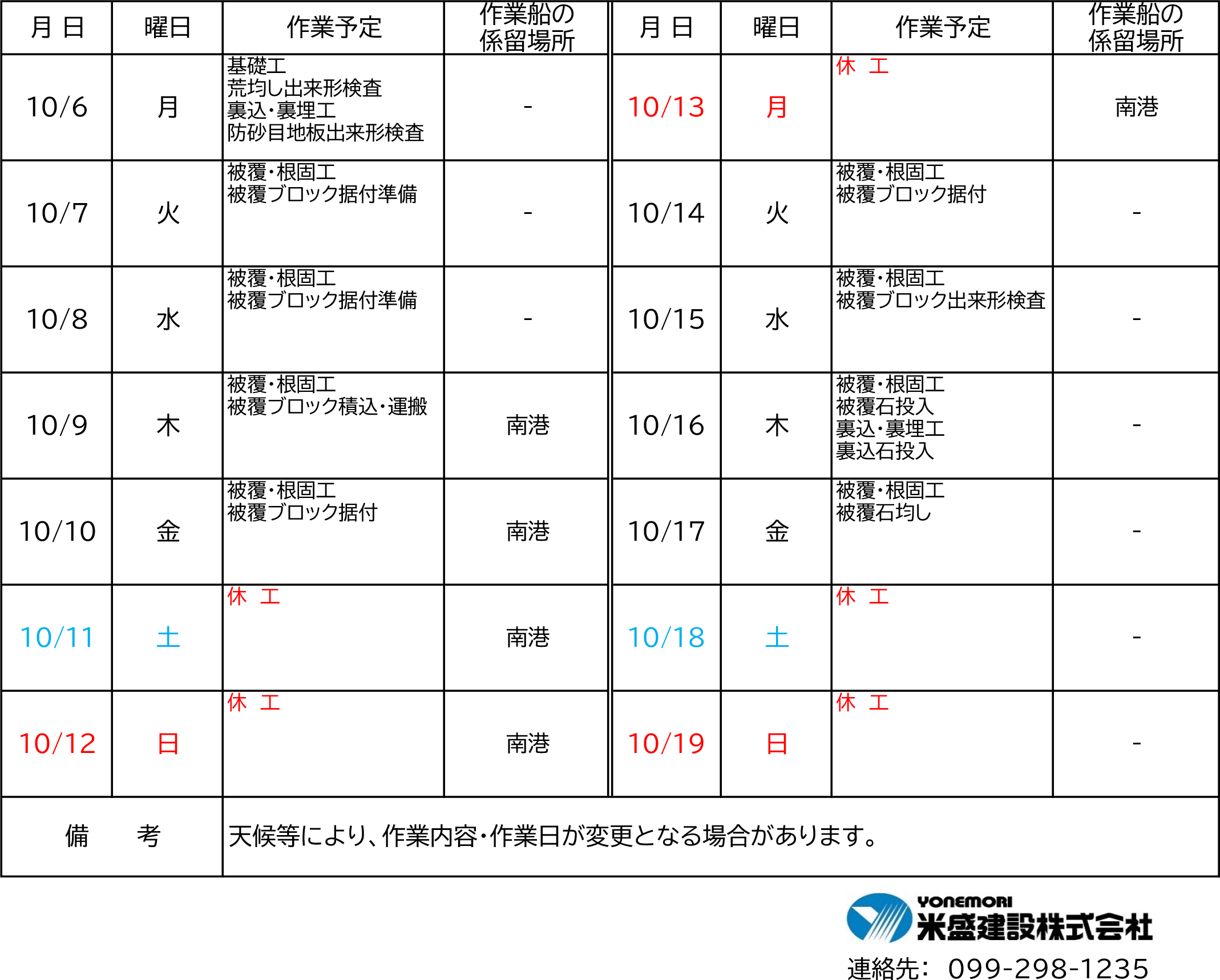 令和7年10月6日(月)〜10月19日(日)