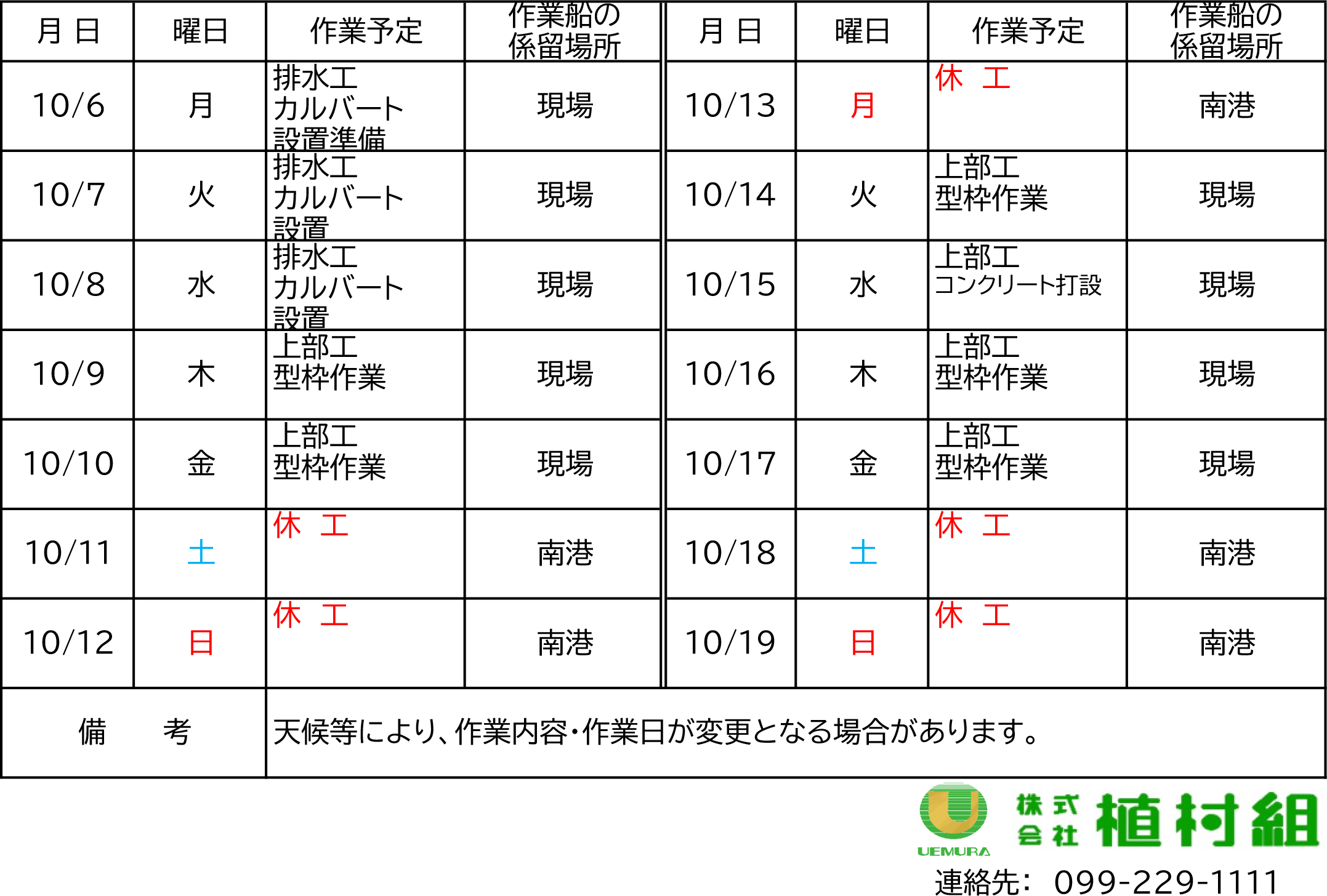 令和7年10月6日(月)〜10月19日(日)